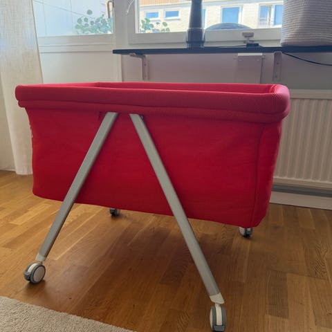 Resesäng från Hauck i beige med nät på sidorna. Levereras i praktisk bärväska med handtag och dragkedja.