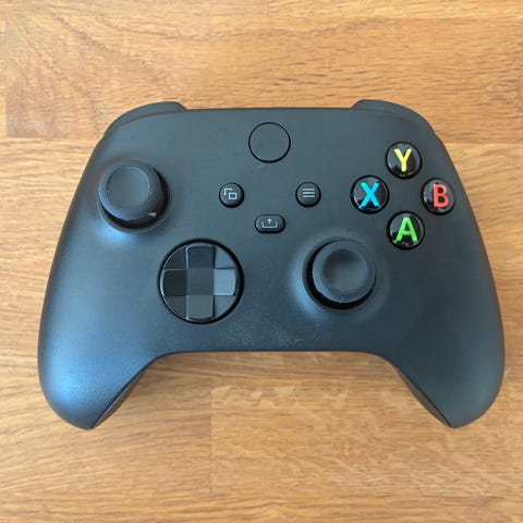 Svart Xbox handkontroll med de klassiska färgade knapparna. Ligger bra i handen och har styrkors samt två styrspakar.