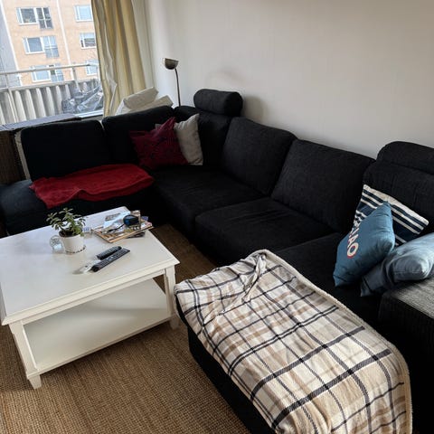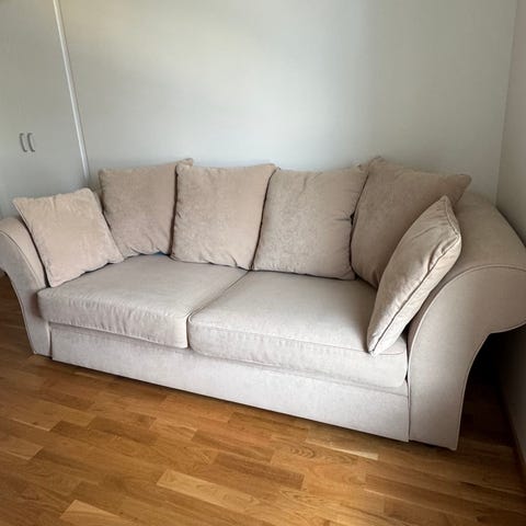 + 2 lösa kuddar i samma tyg och mönster. Och en nackkudde.