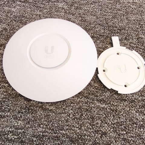 Ubiquiti UniFi UAP accesspunkter för nätverk, runda vita enheter som monteras i tak eller på vägg. Drivs via PoE och har separata nätadaptrar med kablar. Alla delar för att koppla in enheterna följer med, så det gäller bara att nollställa dem, sedan starta upp. Lägg till befintligt nätverk, eller använd som det är. De är av äldre model, men om du inte har supersnabb fiberanslutning, så fungerar de bra.