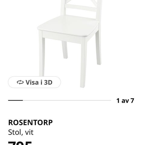 IKEA ROSENTORP matbord med matchande 4 vita stolar. Bord och stolar har enkla raka linjer och släta ytor som är lätta att torka av. Upphämtning av möblemanget.