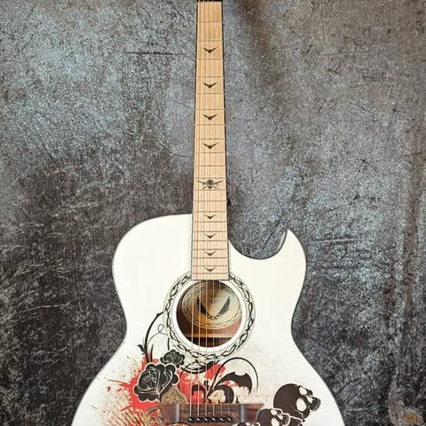 SÀllsynt och visuellt slÄende akustiskt instrument frÄn Dean / Dave Mustaine-signature serien, med det ikoniska USA-flag-motivet. Instrumentet Àr i ny skick och levereras med hÄrdcase (syns pÄ bilden).