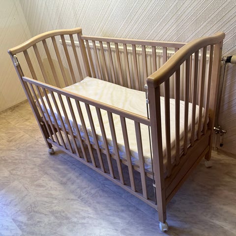 Babysäng, spjälsäng, vit, inkl madrass, använd till besökande barnbarn