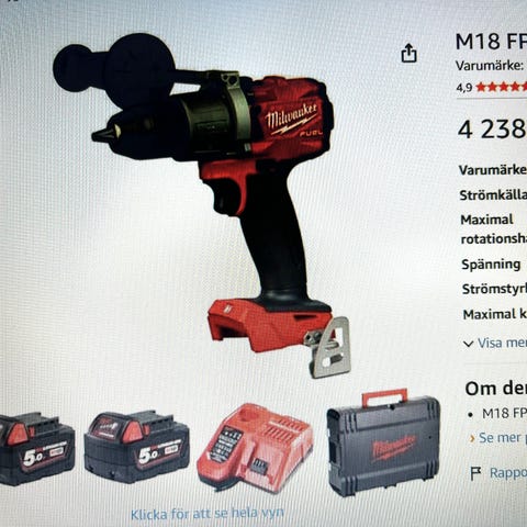 Milwaukee borrskruvdragare i praktisk plastväska. Har sidhandtag och plats i insatsen för fler tillbehör.