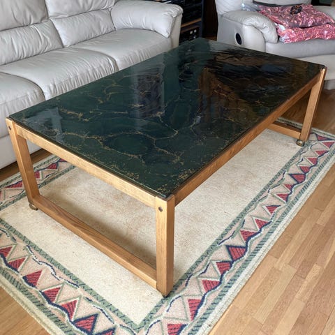 Stort skrivbord med glasskiva skänkes