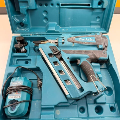 Jag säljer en luftdriven Makita AN454 takpappistol. Den har använts bara till ett takarbete. Spikar mellan 19-45mm kan användas. Mycket enkelt all ladda. Den väger bara 2,4kg vilket gör att den är lättarbetad. Justering på djupet på spiken.