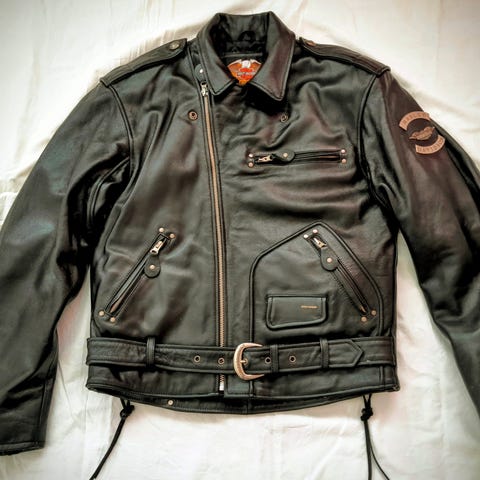 Svart skinnjacka från Harley-Davidson i stl L med stort örntryck och logga på ryggen. Dragkedja fram, två fickor med dragkedja och quiltat foder på insidan.