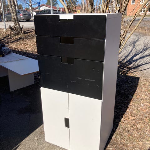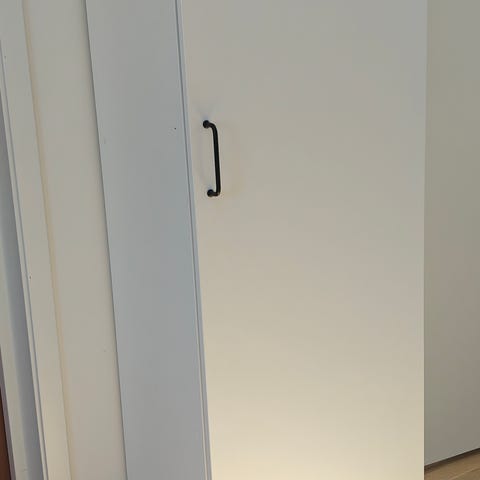 IKEA högskåp/garderob/badrumsskåp med en dörr och handtag på sidan. Passar bra som förvaring i badrum, förråd eller klädkammare.