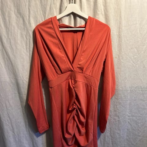 Den döljer ojämnheter på kroppen väldigt bra. Det är mer som en miniklänning, men den är inte jättkort. Bekväm längd. Skicket är som nytt. Sista bilden visar färgen mest korrekt.
