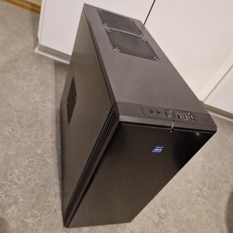 Enligt beskrivning i rubriken. Fungerar väl och duger gott och väl till generell datoranvändning, såsom t.ex. internetsurf, multimedia och kontorsprogram. Har ett bra nätaggregat från Corsair, CX430. Om du vill ha ett grafikkort i kan jag nog ordna det, måste se först om jag har något som får plats i chassit.