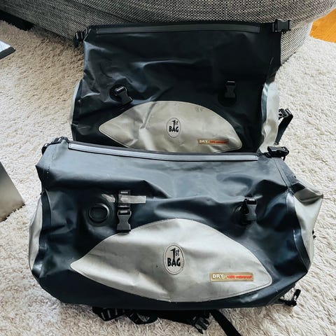 Svart tankväska från XLmoto med genomskinlig ficka upptill och flera dragkedjefack. Medföljer löstagbara remmar och överdrag med fönster för enkel montering på hojen.