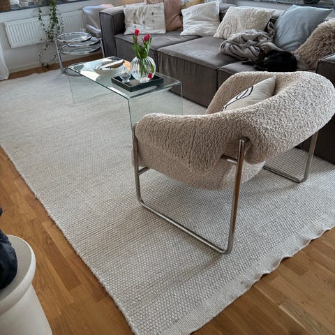 Ryamatta Vollerslev från IKEA i vit färg. Rektangulär modell som ligger bra på golvet och ger mjuk känsla under fötterna.