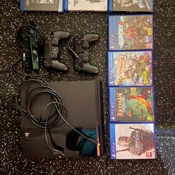 Thrustmaster T.Flight Hotas 4 joystick och gasreglage till Playstation, svart med blå detaljer. Har flera knappar på joysticken och gasen samt kabelanslutning mellan delarna. Bra och mycket andvänt fast ps4 en av två joystickar har inte skydd på båda kontrollerna!