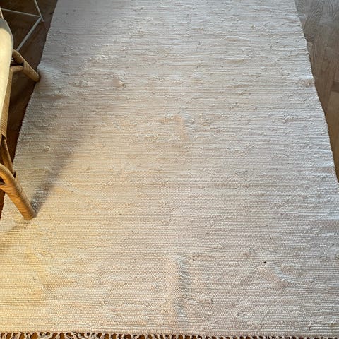 Vit bomullsmatta från ellos. Använd men har inte hittat några synliga fläckar.