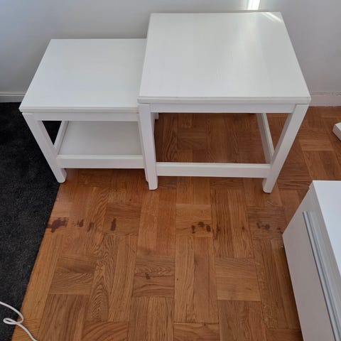 Soffbord 85x85x52 i använt skick. Färgskav på lite olika ställen och lådan kärvar lite. Funkar för övrigt som det ska m avlastningshylla under. Djur i hemmet men RF. Finns och hämtas i ekholmen.