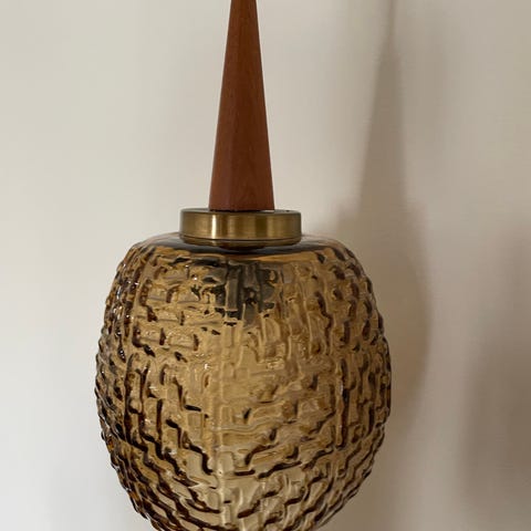 Vintage taklampa i Dansk design - 1960-tal - Mässing/Teak/Glas
