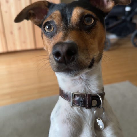 Han går bra i koppel och är rumsren. Går bra med andra hundar. Man vet inte med katter