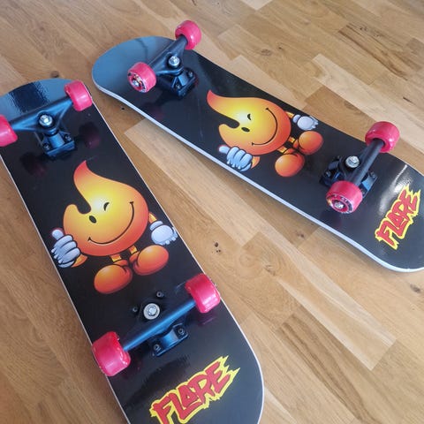 Brädan är i mycket gott skick och har rullat sparsamt. Det finns ett litet kosmetiskt märke i kanten på griptapen (se bild), men inget som påverkar åkningen överhuvudtaget. Träet är fräscht och har kvar sin "pop".