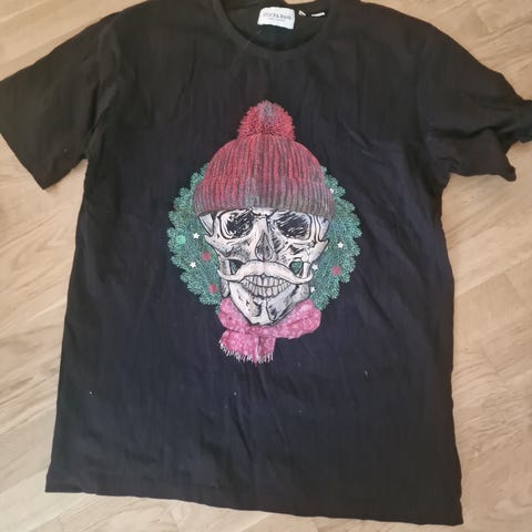 Svart t-shirt från New Yorker (Smog) i stl M i bomull. Stor vit poker/skull-tryck fram, enfärgad bak.