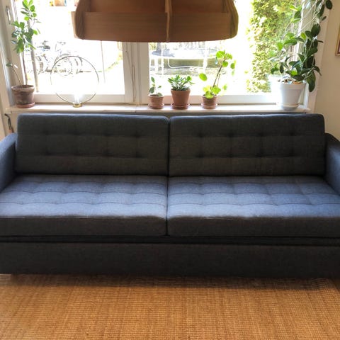 vintage dagbädd från mitten av århundrade. Avtagbara kuddar. Träram. Unik vintage dagbädd.