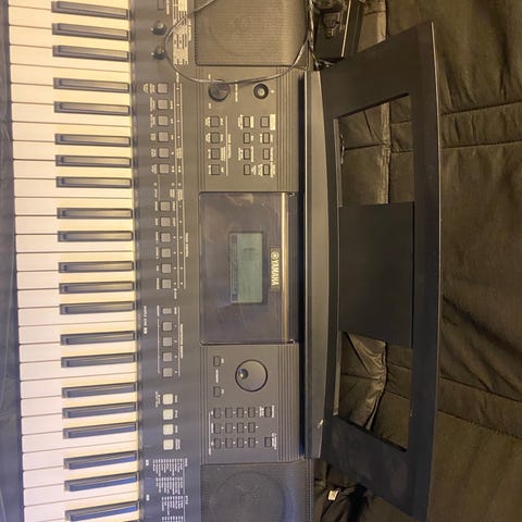 Gear4music MK-5000 keyboard med många inbyggda rytmer och funktioner. Har notställ och flera knappar och reglage för olika ljud och inställningar.