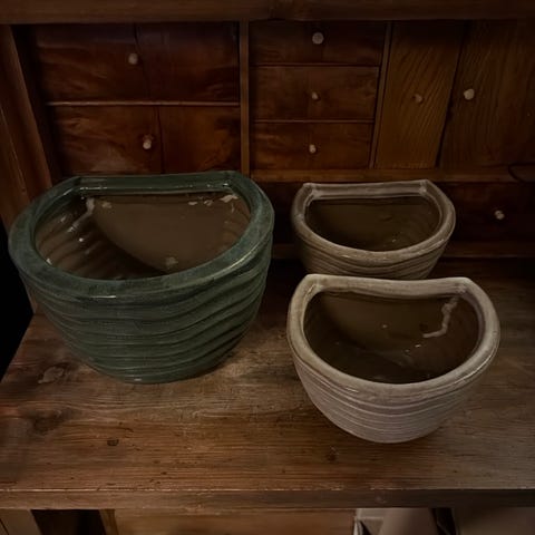 Två stora keramiska växtkrukor med glaserad finish.