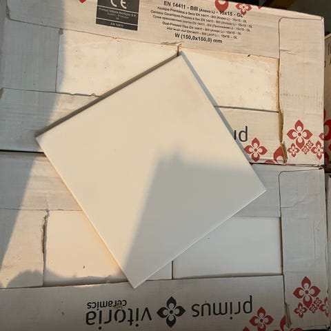 Vita 15 x 15 cm kakelplattor, slät blank yta. 11 kvadratmeter.