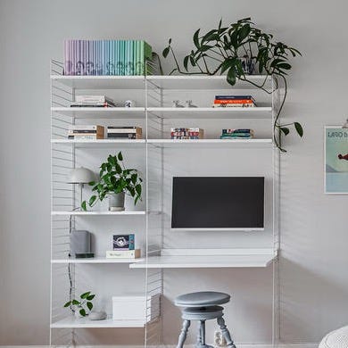 String hyllsystem med skrivbord i vitt av Nils Strinning