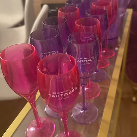 Säljer 4 st eleganta champagneglas från Taittinger (Reims). Perfekta för fest, nyår eller middagar när du vill servera bubbel med stil.