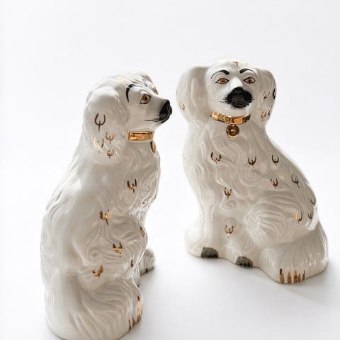 Vita porslins hundar, två st 20 cm höga och två 10 cm höga.