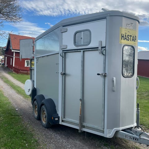 Frontutlastning, kombiramp bak, extrautrustad med sadelkammare på skötardörr, stoppade bommar och sidor/mellanvägg.