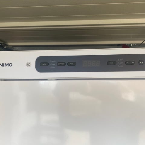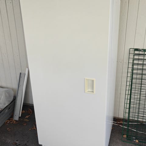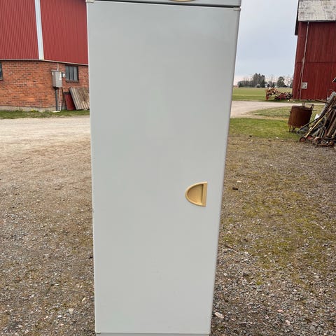 Nimo ETS 650 torkskåp i vitt, modell BYGG med oval front. Har flera hyllplan och upphängning för kläder samt tydlig märkplåt med info på insidan.