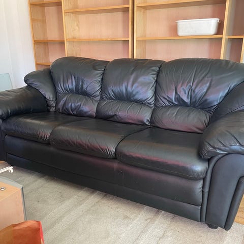 Mycket fin 3-sits skinn bäddsoffa, mossgrön.