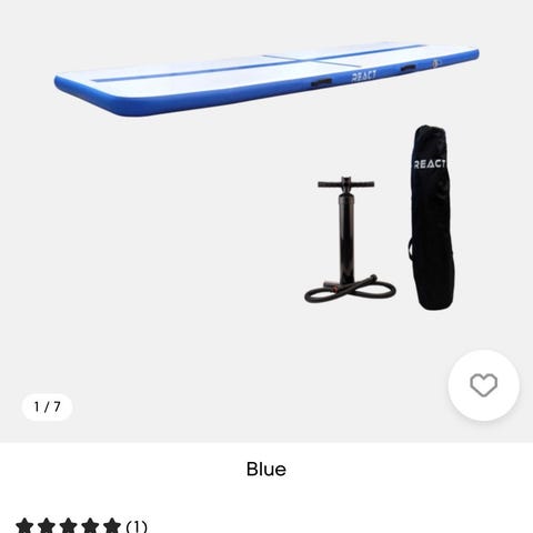 Airtrack-matta i blått och vitt med mittlinje, bra för gymnastik och träning. Ligger uppställd på gräsmatta och har ventiler för att pumpa i och ur luft. Båda två är 1x3 meter lång! Båda är i mycket bra skick och medföljer två pumpar samt förvaring påse för båda två/ enkelt att förvara och tar inte mycket plats. Inga andra skavanker som hål men lite gräsfläckar men övrigt mycket bra skick och sparsamt andvända . Säljer en för 2500kr men båda två säljer jag för 3500kr(kan tänka mig gå ner lite i pris vid snabb affär för båda)