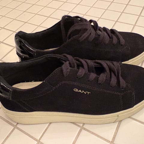 Mörkblå Fred Perry sneakers i stl 43 med vit sula och snörning fram. Har broderad logga på sidan och vit kant runt hälen.