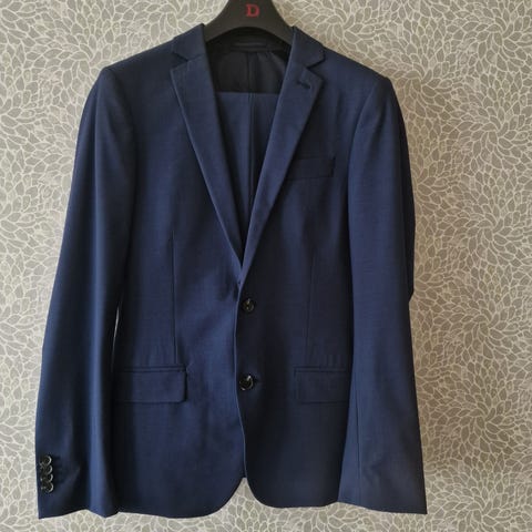 Elegant mörkblå kavaj från Massimo Dutti, tillverkad av finaste italienska tyget.Helt oanvänd, Storlek 50, butikspris ca 3000kr Kavajen har en klassisk design med två knappar framtill och en stilren passform. Perfekt för formella tillfällen.