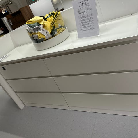 Malm byrå 6 lådor inkl. Glasskiva