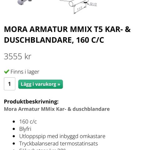 Mora duschblandare i krom med termostat och vred på sidorna. Har anslutningar bakåt och utlopp uppåt för duschset.