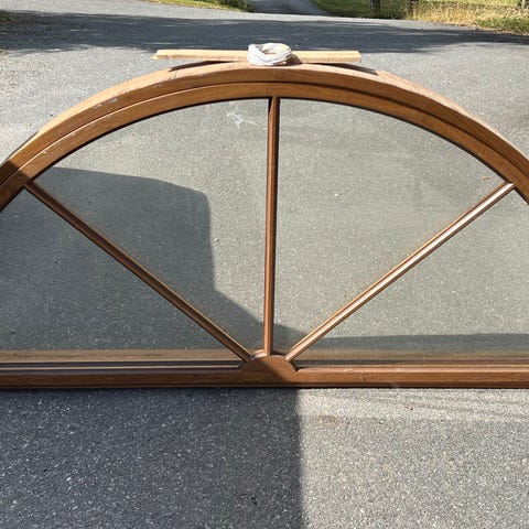 Fint, runt fönster 80 cm med träkarm säljes, glaset sitter i en ram. Följer med lösa böjda trädelar för insidan, som hör till karmen.