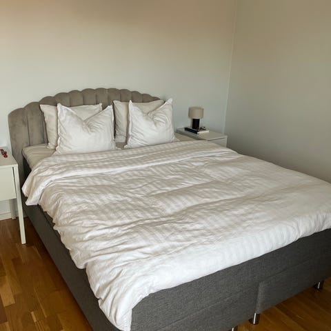Jag säljer min säng från Mio samt en sittbänk med förvaring. Nypris var ungefär 23 900 kr.