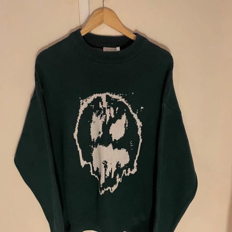 Säljer en svart långärmad tröja från ”Gianni Versace (Versus) med en cool vit grafisk design på framsidan. Den är i nyskick, Storlek M. Nypris 3500kr. Perfekt för en avslappnad stil och passar bra till både jeans och sneakers. Tröjan är i bra skick och redo för nya äventyr!