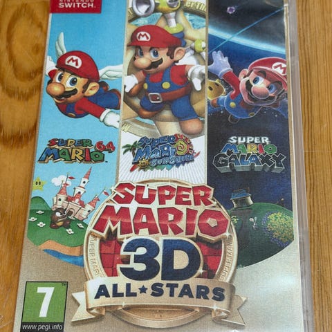 Nintendo Switch-spel med Super Mario Galaxy och Super Mario Galaxy 2 i samma fodral. Kassetten sitter i originalask med tryckt omslag både utvändigt och på insidan.