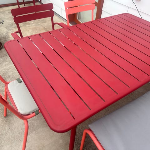 Fermob utegrupp bord och stolar i metall, mixade färger