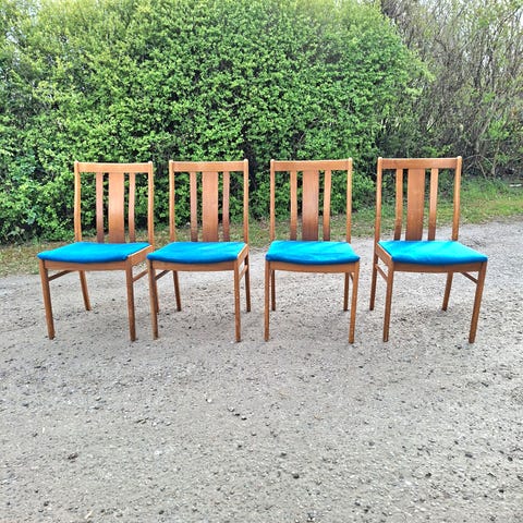 Stolarna är i fint begagnat skick med mindre bruksspår som hör till åldern, men inget som påverkar funktion eller helhetsintryck. Träet har en varm ton som ger en ombonad känsla i rummet.