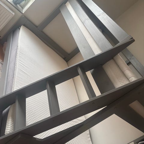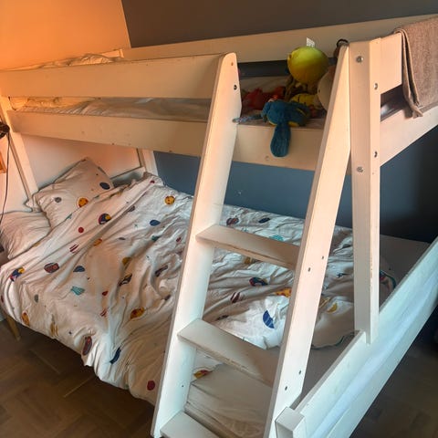 Säljer vår fina och praktiska våningssäng med bred underslaf (120 cm) och överslaf (90 cm). Perfekt för syskonrum eller när man vill kunna ligga bredvid.
