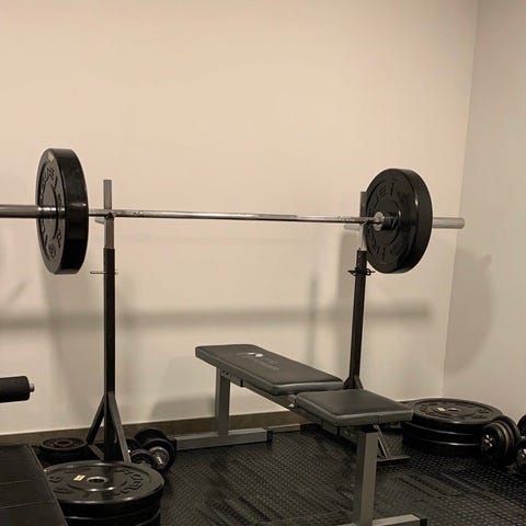 Säljer ett gäng styrkemaskiner och fria vikter som syns på bilderna. Flera olika maskiner för ben och överkropp samt ställning för skivstänger och viktskivor.