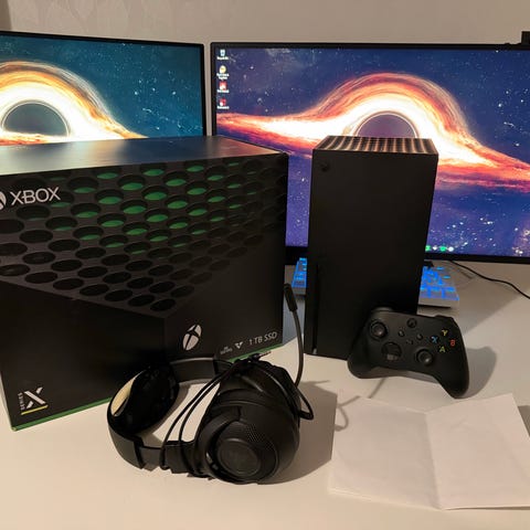 Säljer min Xbox Series X i mycket fint skick tillsammans med en stilren blå originalkontroll (Shock Blue). Konsolen är tillverkad i september 2023, alltså en nyare revision.