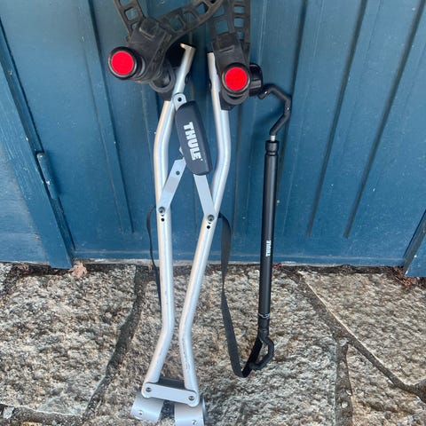 Låsbart, välvårdat. Plats för 3 cyklar. Ett gummispänne saknas