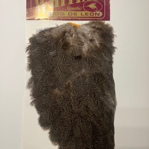 Flugbindning: Whiting Coq de Leon nacke. Badger dyed Copper Olive