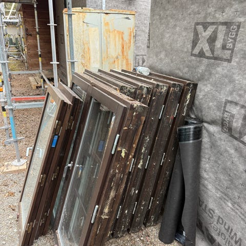 Finns även en altandörr 9x21 (höger), öppningsbara fönster 11x13 och 9x13 i dåligt skick som bortskänkes.